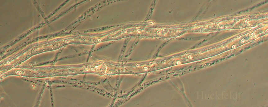 Die Mikromerkmale des Kellerschwammes - Gefäßhyphe (Coniophora puteana)