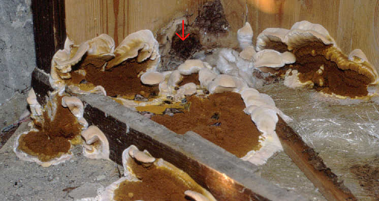 Exquisiter Wuchsort für die Fruchtkörper des Echten Hausschwammes (Serpula lacrymans)